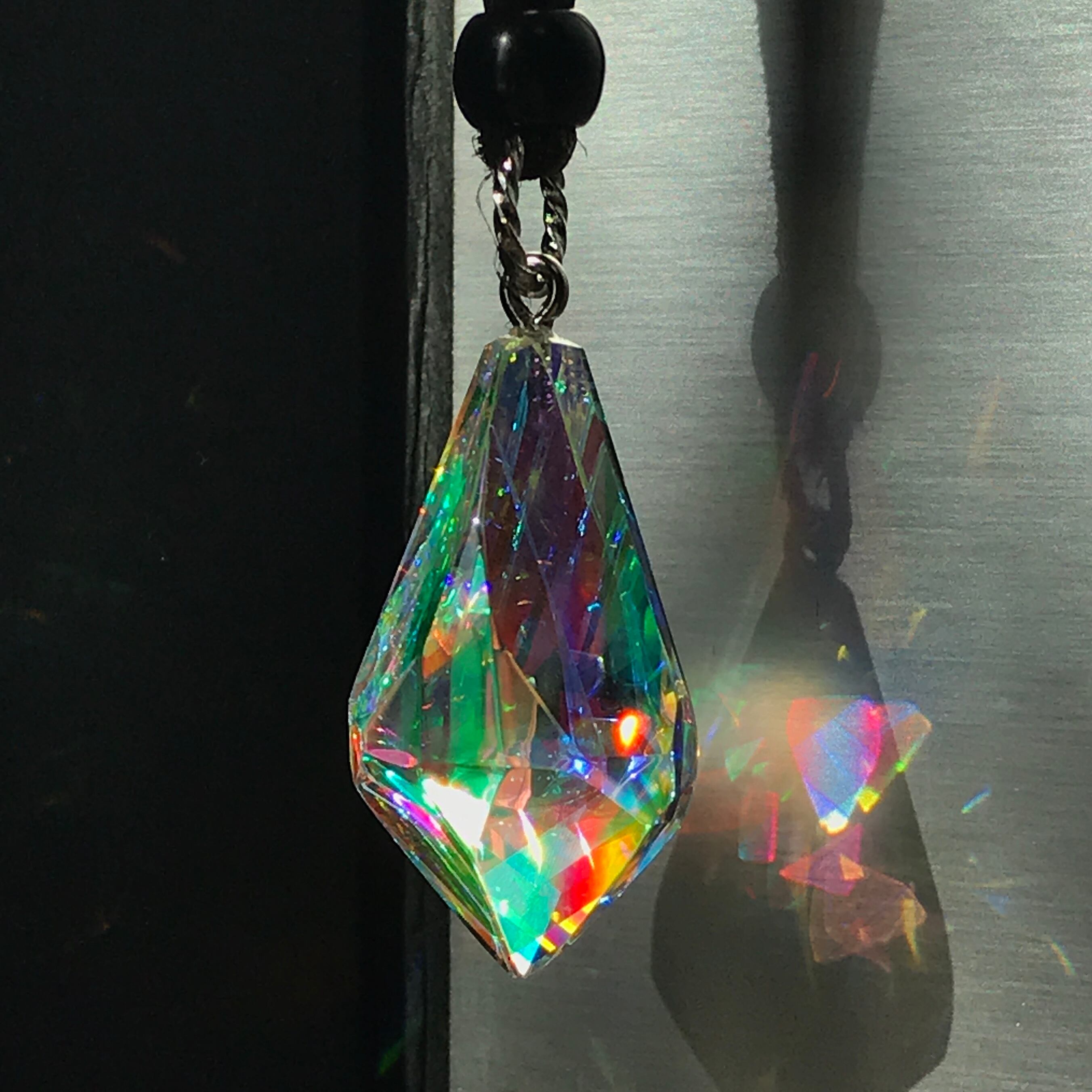 加工前の状態も板状のガラスをカットする所から全て自分で制作しております。また身に付ける方への安全性を考慮し全て角を面取りしたり先端を平らくしたり、バチカンの穴開けにも超音波穴開け機を導入することによりより美しい仕上がりになる様に配慮しています。